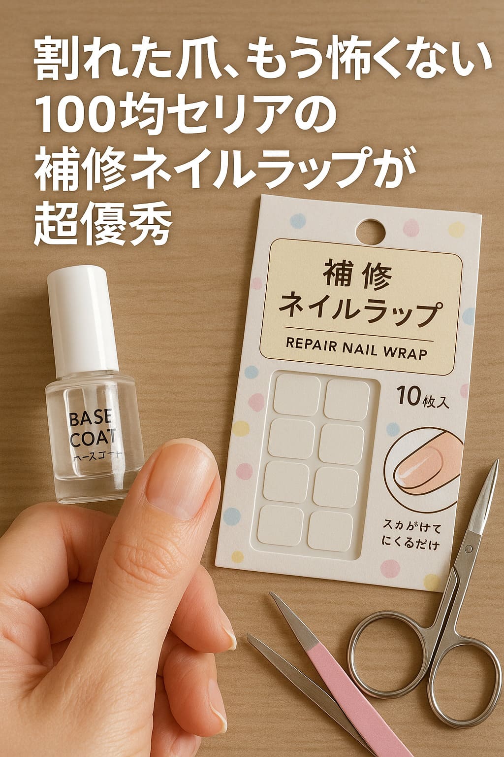 「また爪が割れちゃった…どうしよう」そんなプチトラブル、誰でも一度は経験ありますよね。特に、爪を伸ばしている途中だったり、大事な用事がある日にはショックも大きいもの。でも大丈夫!実はセリアに“割れ爪補修の神アイテム”があるんです。今回は、その【補修ネイルラップ】を使った簡単なケア方法から、長持ちさせるちょっとしたコツまで、初心者さんにもわかりやすくご紹介します。