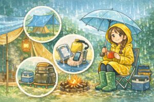 雨の日キャンプでは、次のような対策を意識してみてください。