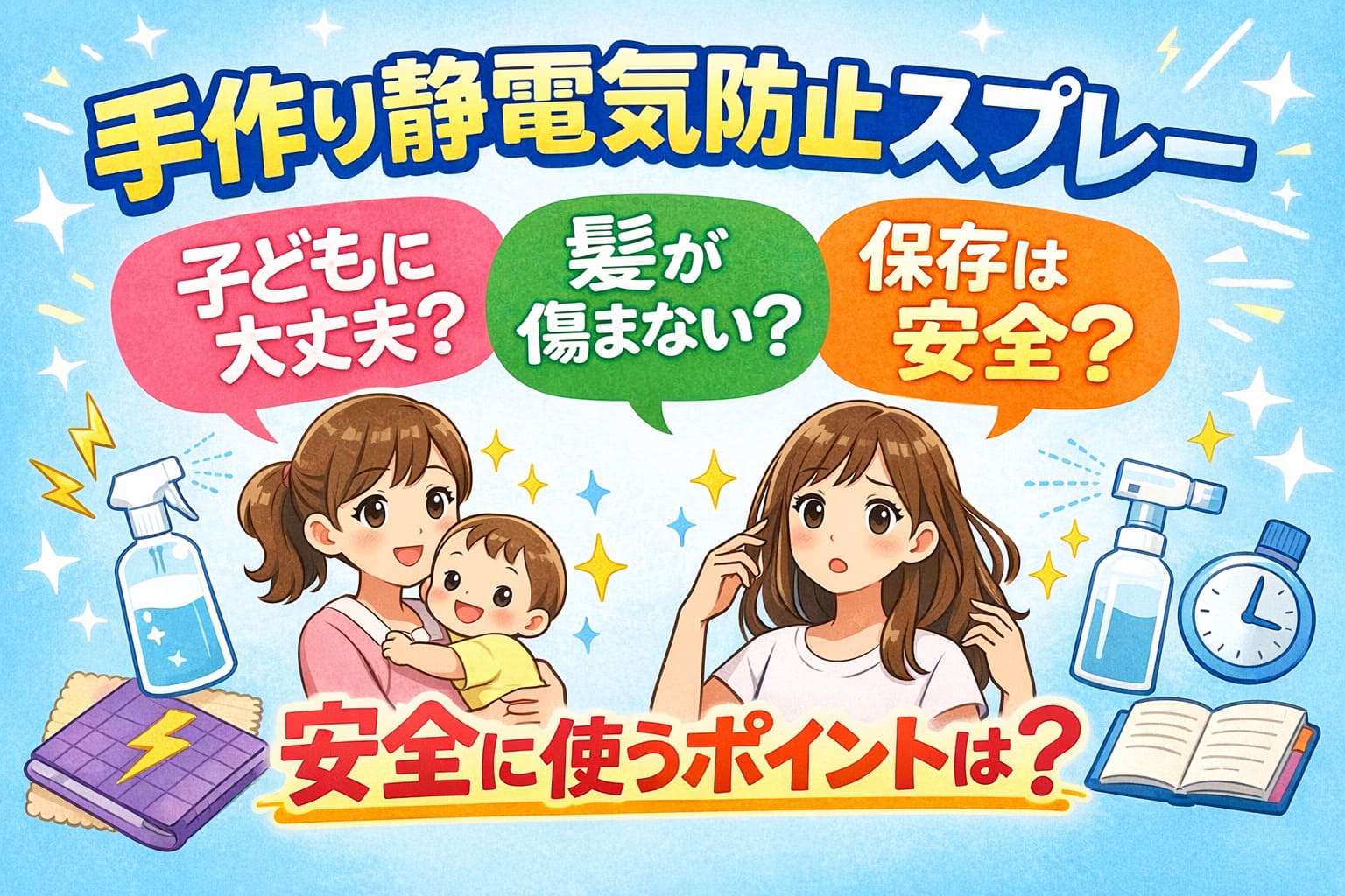 しかし同時に、「子どもに使っても大丈夫?」「髪にスプレーして傷まない?」「保存は安全?」といった不安も出てきます。